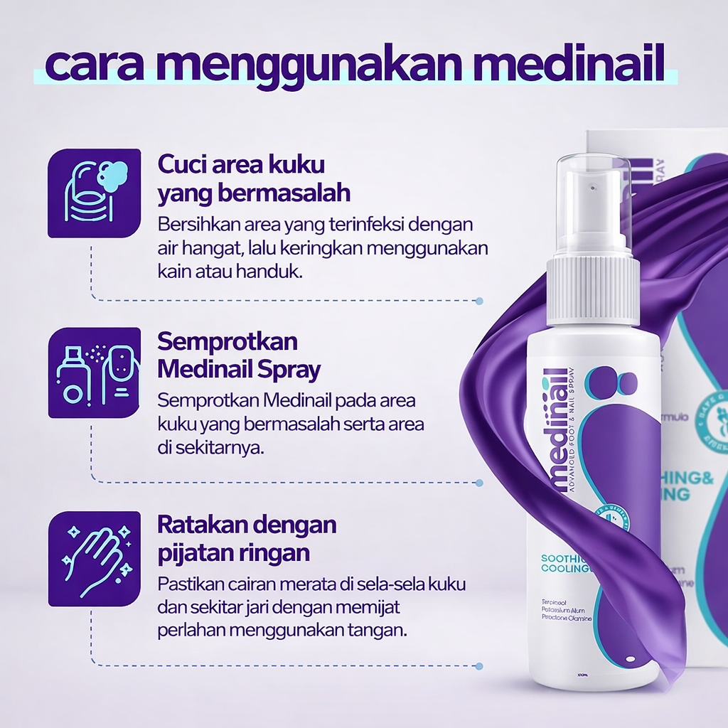 “Masalah jamur pada kuku sering dipicu oleh kondisi lembap dan kurang bersih. Perawatan yang baik dimulai dari menjaga kebersihan kuku dan menggunakan produk perawatan yang tepat. Medinail Spray bisa menjadi pilihan pendamping perawatan kuku karena penggunaannya praktis dan membantu menjaga kebersihan area kuku secara rutin.